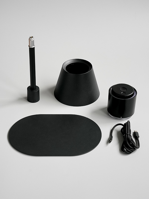 シェード・LEDライト(光源)・スタンドバー・プレート・充電ケーブルがそれぞれ別個のパーツとなっていて、