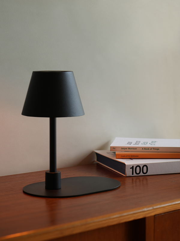 「PLANTE portable lamp S BK」はモダンなブラックのショートサイズタイプ。