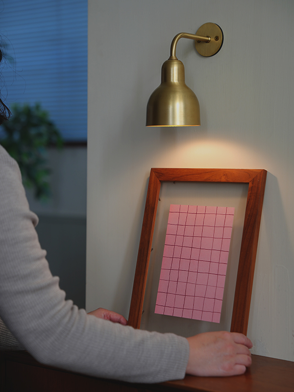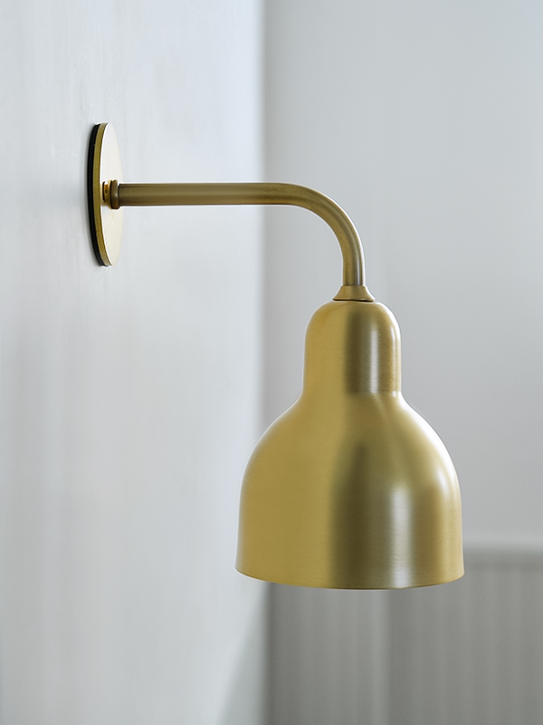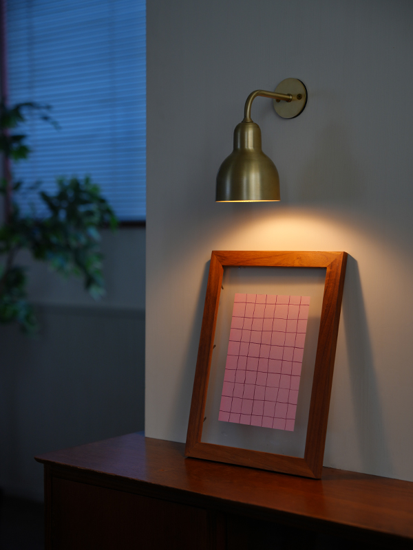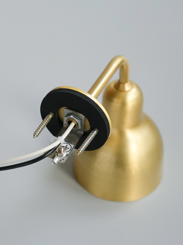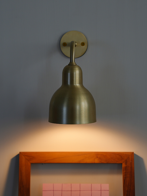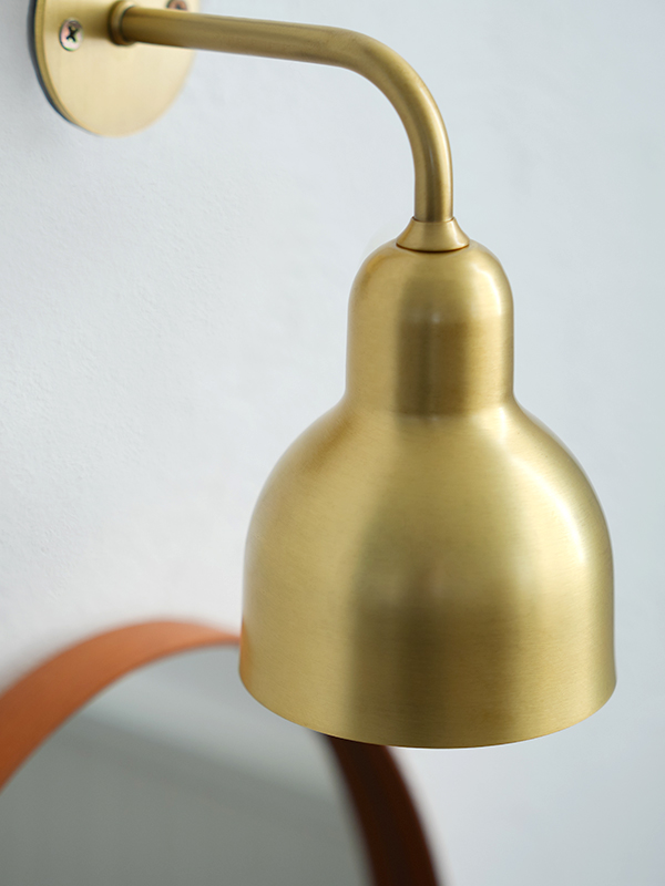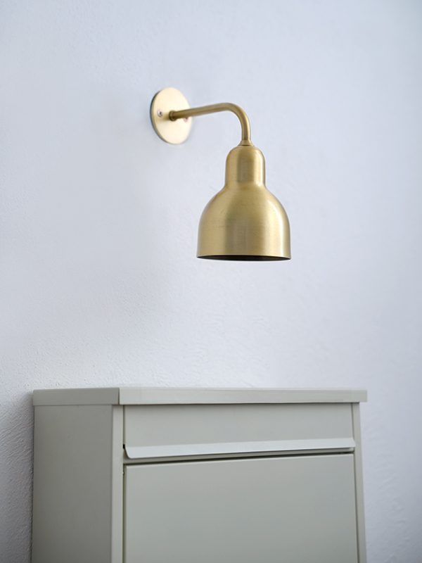 「metio エントランスライト ブラス」はシェード〜アーム部分に至るまで真鍮製。