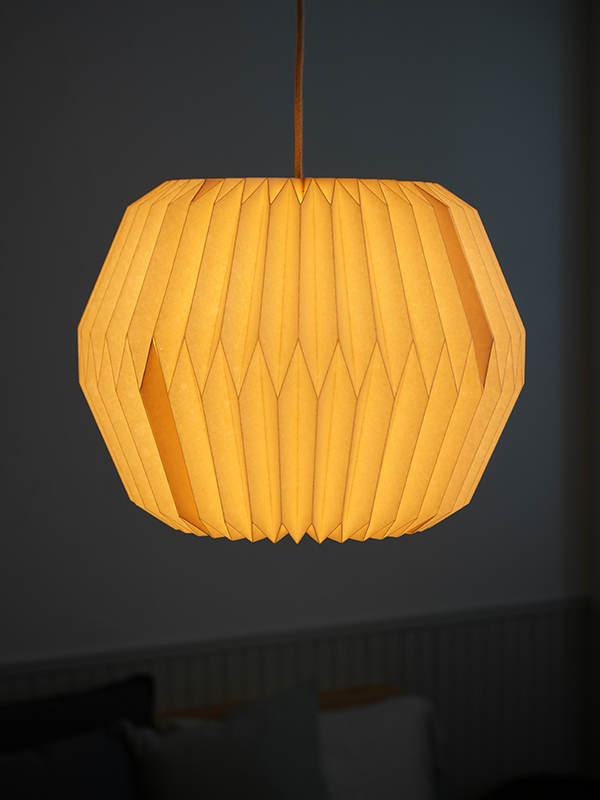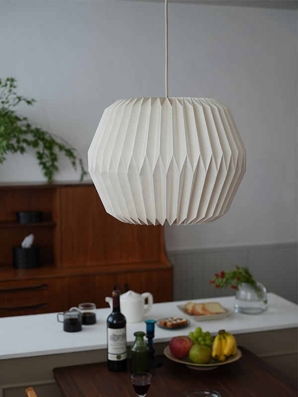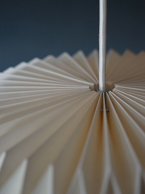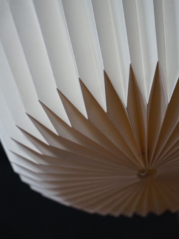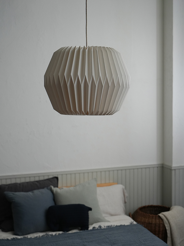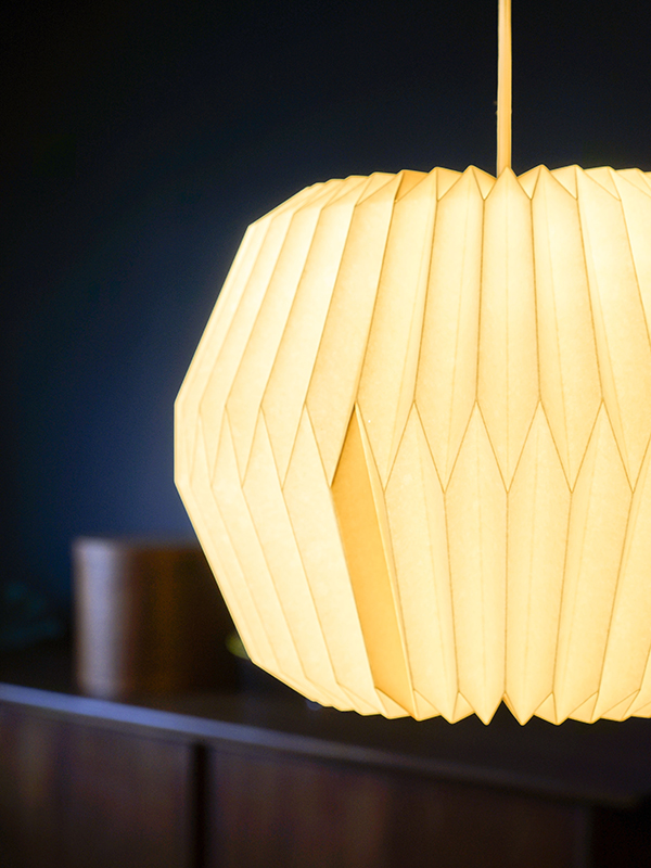 ひとつひとつ手で折りあげられた、美しいフォルムは、柔らかな光と影のコントラストと落ち着いた雰囲気と安らぎを与えてくれます。