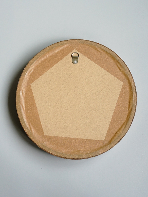 裏側の仕様はヨーロッパのアンティークミラーやフレームで見かける簡素な仕上げで、裏板を貼付けていないため軽量。2ヶ所に金具が付いています。可愛らしい丸みと小さなサイズなので、玄関や寝室など場所を選ばず置く事ができますね。