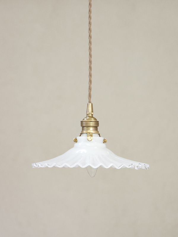 ツイストコードと真鍮のソケットの組み合わせは懐かしい雰囲気。シェードと組み合わせる事でさらにデザイン性が増します。