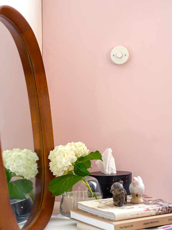 デザインはアンティークのスイッチにインスパイアされていますが、日本製なので安定してお使いいただけます。ボディだけではなくスイッチ部分も磁器製で、カチリ、という確かな押し心地にアナログの温もりを感じます。クリーンなホワイトは住宅だけではなく、サロンなどの店舗空間にもおすすめです。