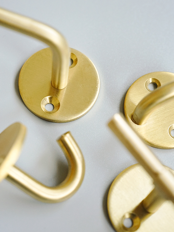 天板裏や天井などに取り付ければ、灯具のコードをひっかけて、コードの長さや位置を調整することができます。真鍮素材なので日々使うごとに経年変化し、落ち着いたやわらかい風合いになります。