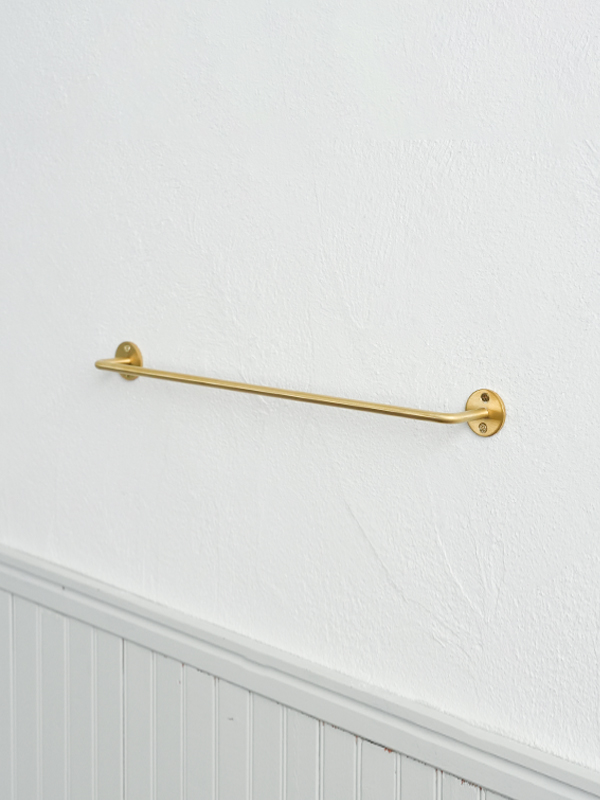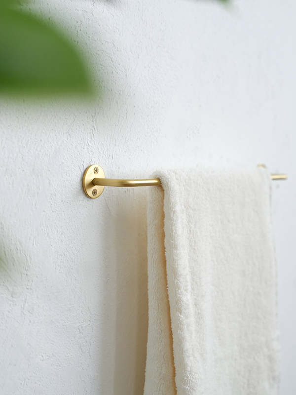 すっきりとしたコンパクトなデザインなので、キッチンやトイレなど狭い場所でも圧迫感なく設置ができます。真鍮素材なので日々使うごとに経年変化し、落ち着いたやわらかい風合いになります。