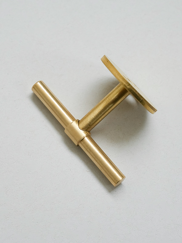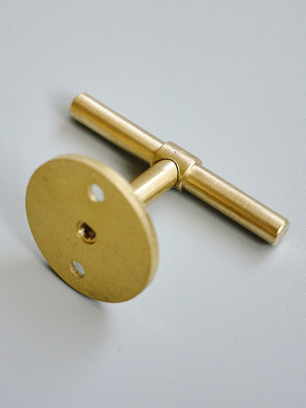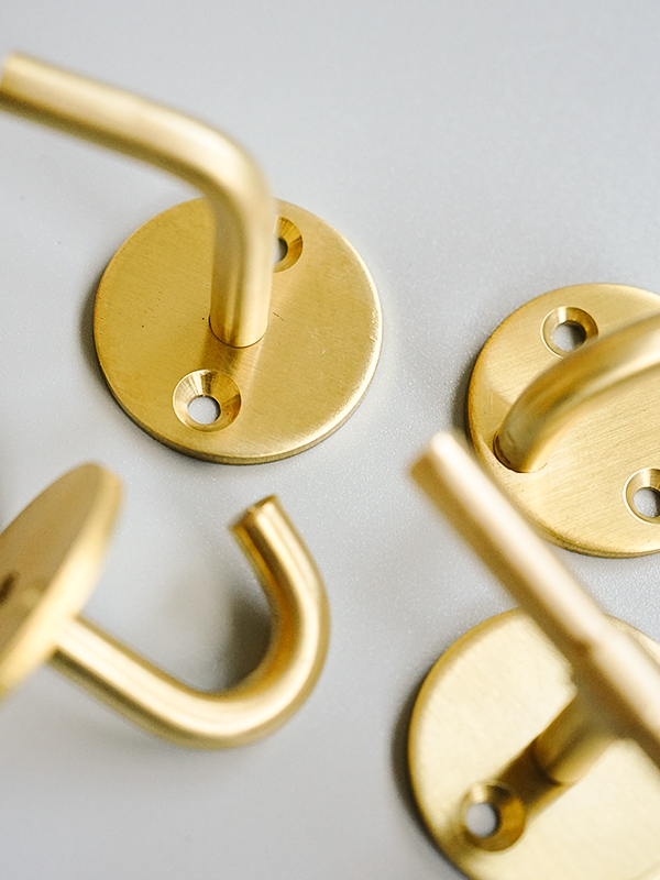 真鍮素材なので日々使うごとに経年変化し、落ち着いたやわらかい風合いになります。引き出しなどのフックとして使用はもちろんですが、縦・横と向きを変えて取り付けするだけで様々な用途にお使えいただけます。