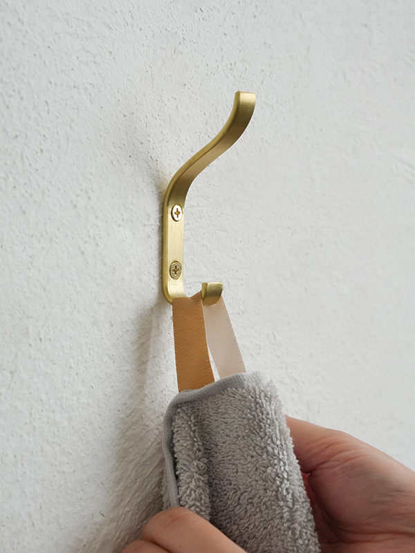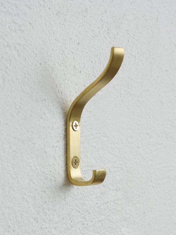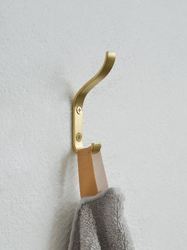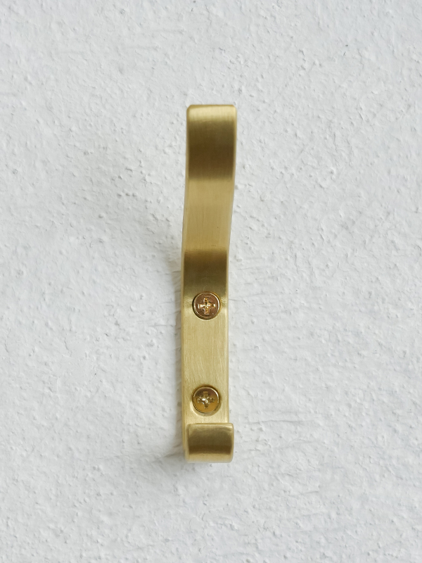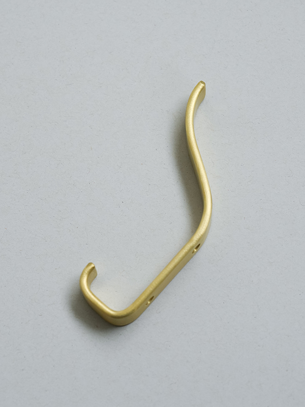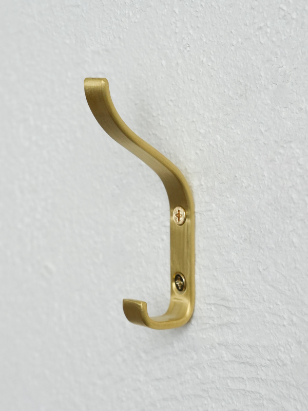 カバンや帽子などを掛けるのに便利な真鍮製ツーフックです。コンパクトなサイズ感は玄関や扉の裏などにはもちろん、壁や家具などのちょっとしたスペースにも取り付けられます。全体的にカドが丸みを帯びた、柔らかな印象のデザインをしています。
