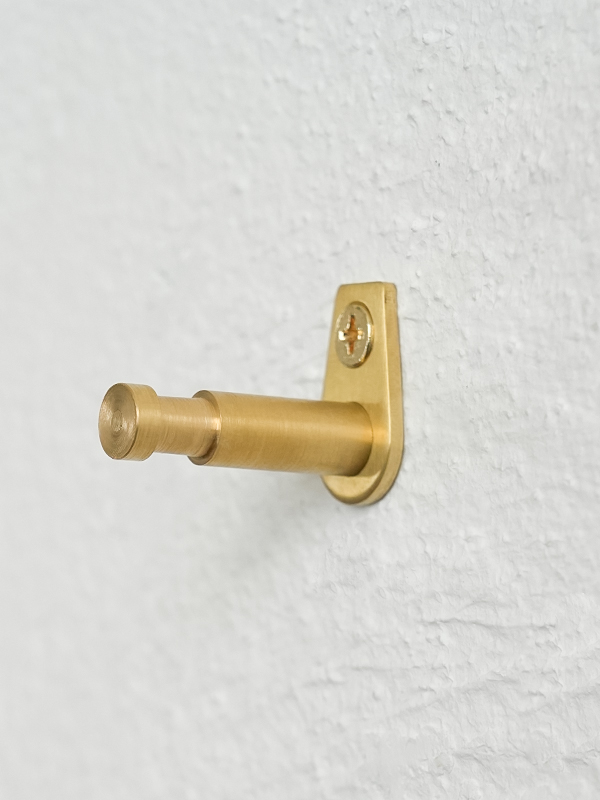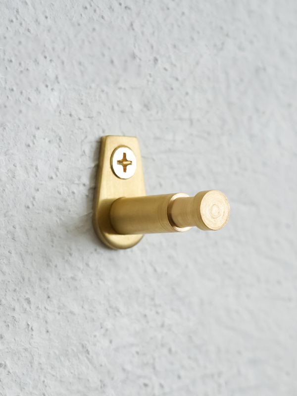 カバンや帽子などを掛けるのに便利な真鍮製フックです。コンパクトなサイズ感は玄関や扉の裏などにはもちろん、壁や家具などの狭いスペースにも取り付けられます。荷物を掛けた時にずれ落ちにくいスピンドル型の突起デザインをしています。