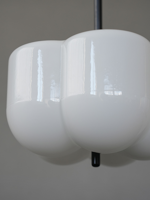 優雅なフォルムが目を引く、ガラス製ペンダントライトです。