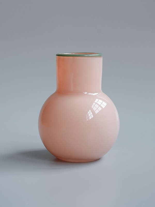「COLO ガラスベース M ピンク×グリーン」は、ボディ部分がピンク・ふち部分がライトグリーンの組み合わせ。