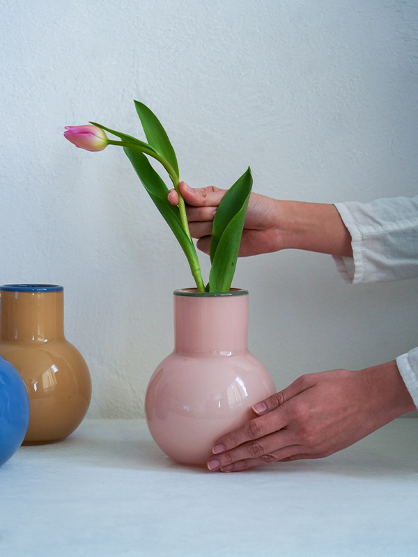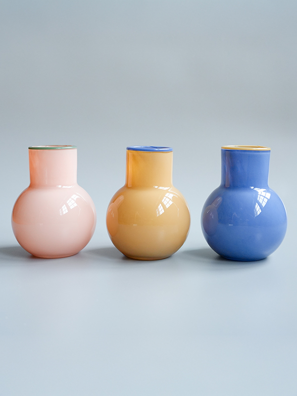 ぽってりと厚みのあるガラス、丸みを帯びたふち、ニュアンスカラーが全体の印象を魅力的に纏めています。