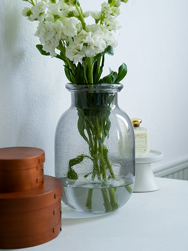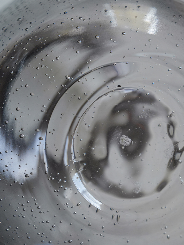 シックなグレークリアガラスにランダムな気泡が入っていて、