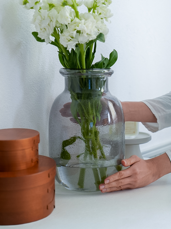 「バブル ガラスベース L グレー」は、両手で抱える程度のトールサイズベース。