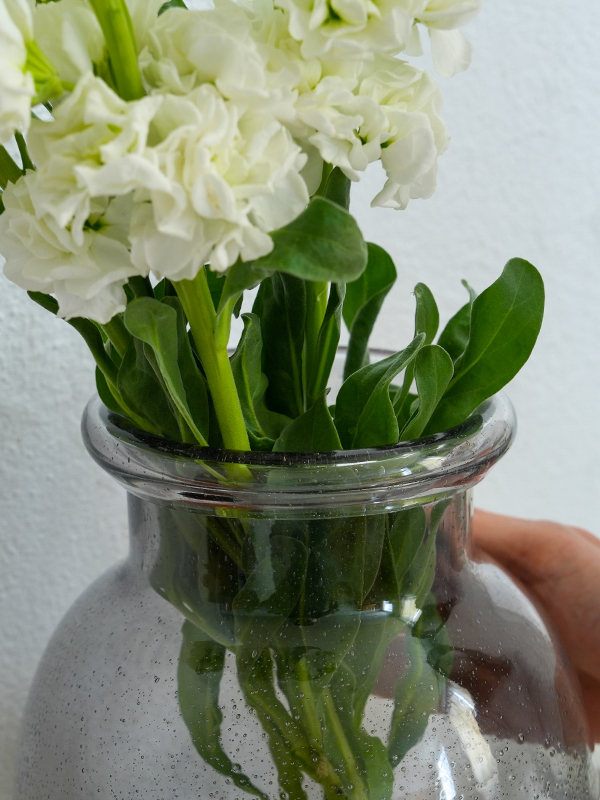 ぷつぷつ、プクプクと様々な表情の泡が入ったバブルガラスのフラワーベースです。