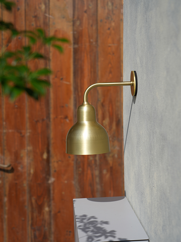 「metio エントランスライト ブラス」はシェード〜アーム部分に至るまで真鍮製。