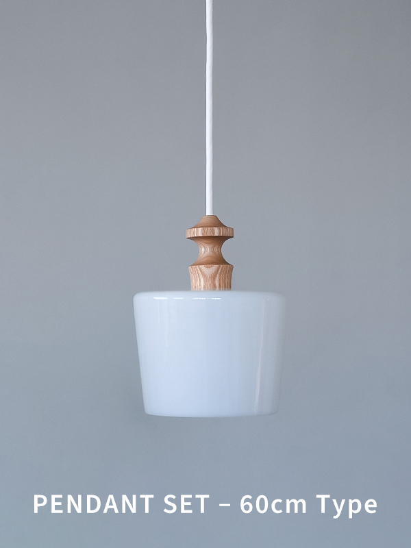 コンパクトな筒型シェードに、コード長60cmの灯具がセットになったタイプ。