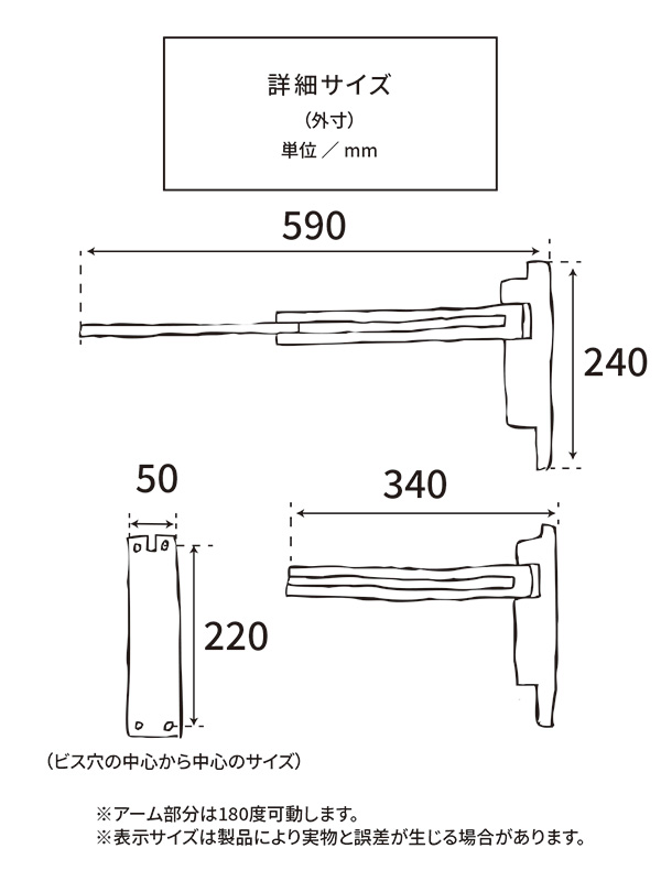 アーム全長/約590mm(根元側310mm・先端側280mm)