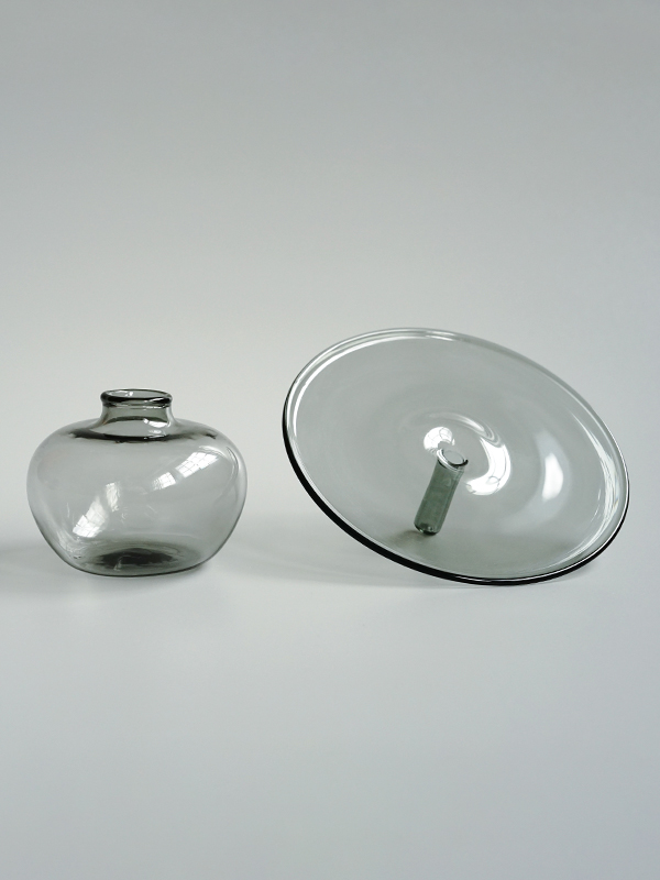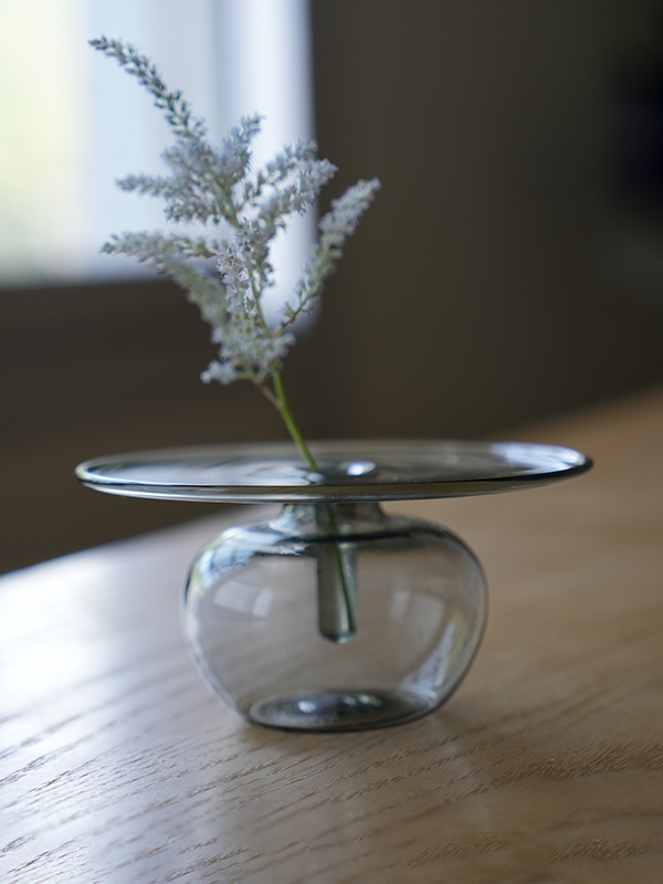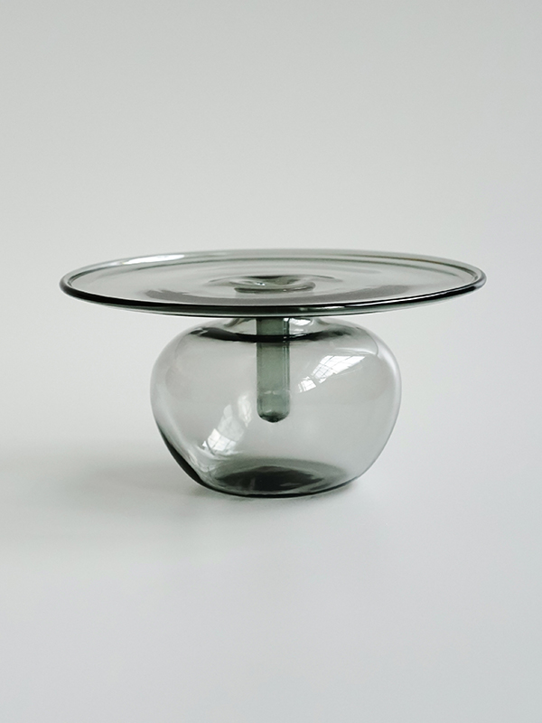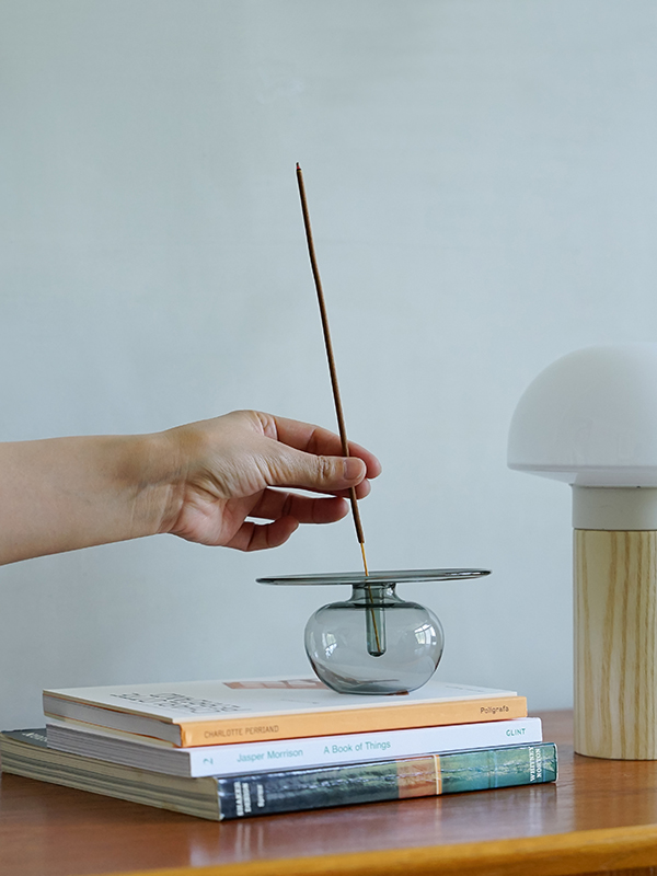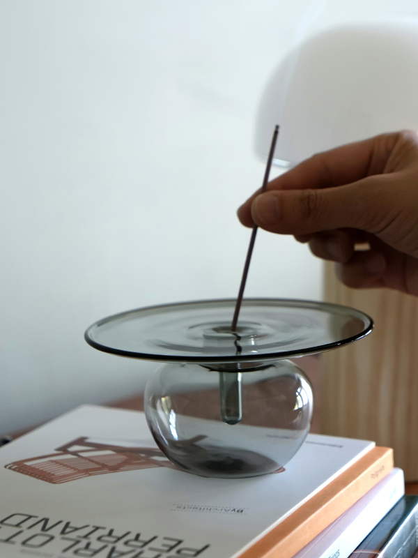 「ガラスインセンスベース Lua グレー」は、落ち着いたトーンのグレーガラス製。