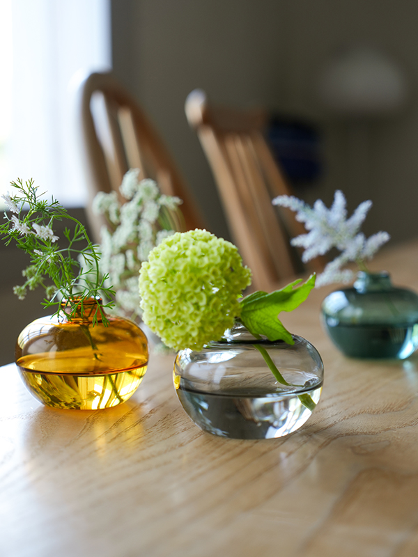 型吹きガラスのゆらぎ感と丸っこいフォルムが空間に個性をプラスします。