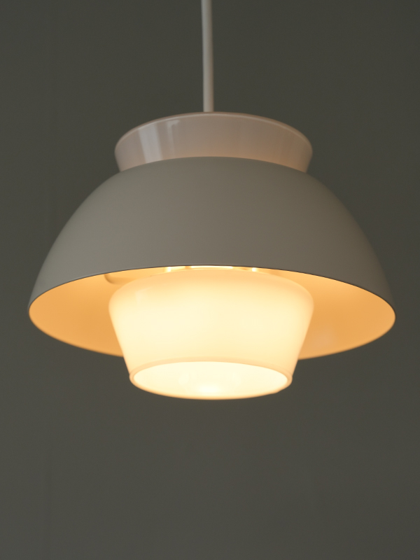 「Sulaa pendant light 60 WH」は、ホワイトアイアンと乳白ガラスを組み合わせたシェードが特徴です。シェードの隙間から光が柔らかく広がり、視界に入っても眩しく感じにくいデザインです。