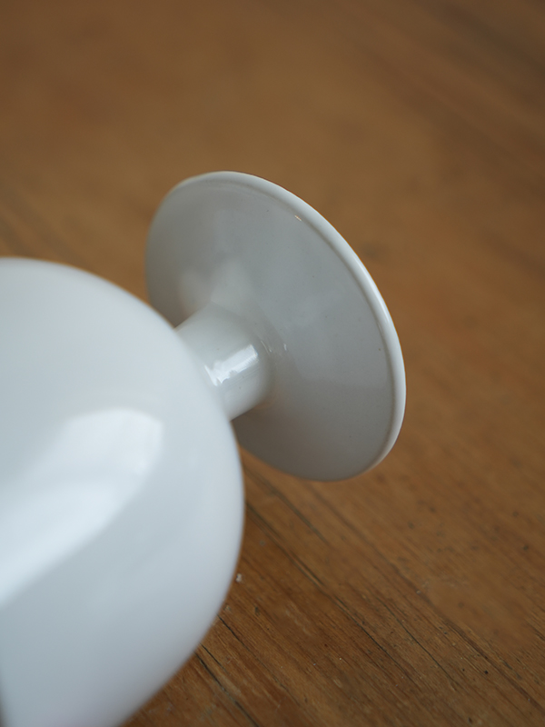 表面はグレーがかった艶のある白色、底部分裏側は素地が残る赤茶色をしています。