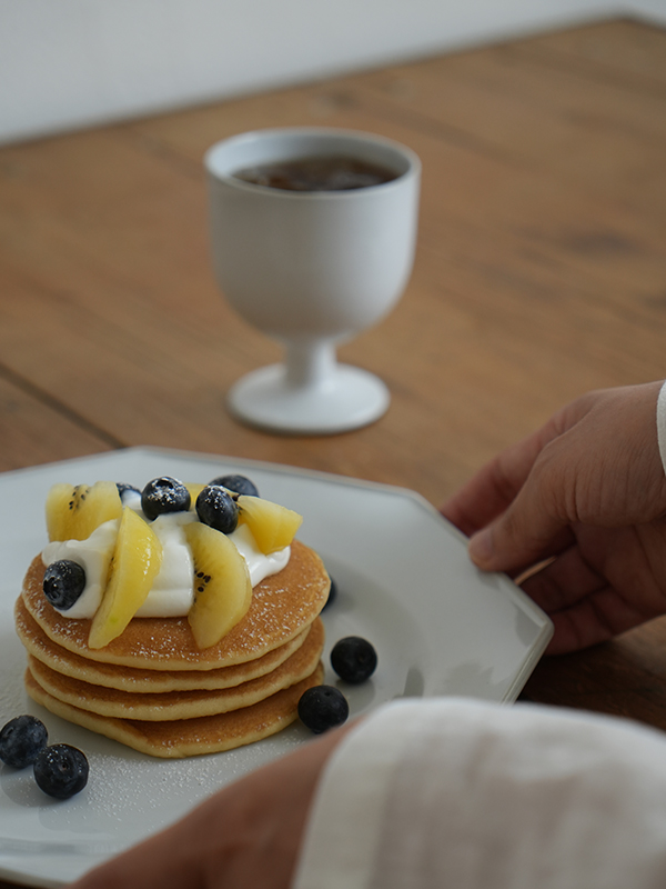 ゴブレットだけでお使いいただくのはもちろんの事、「Teno オクトゴナルプレート M」と一緒に使ってティータイムセットや晩酌セットにするのもおすすめです。
