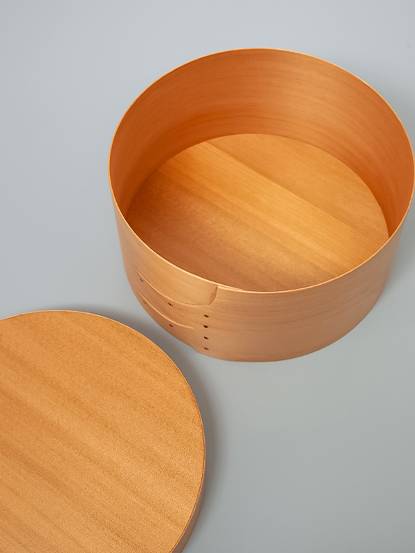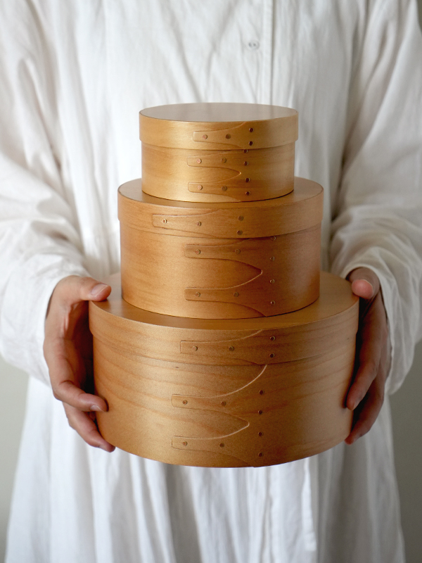 シェーカーボックスは薄い木材を曲げて作られる、シンプルな楕円型の木箱です。