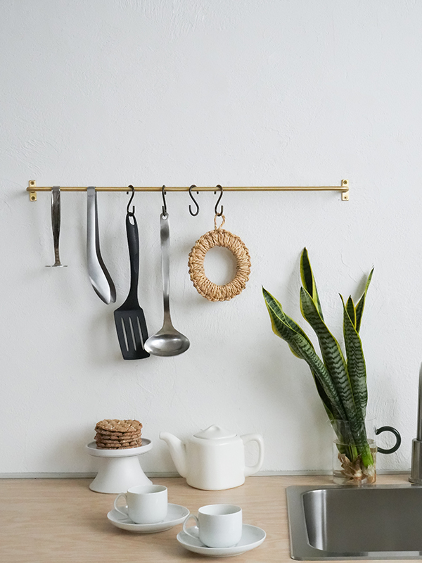S字フックを引っ掛けたり、調理用具を掛けたり、クロスを掛けたりと様々に使用できます。