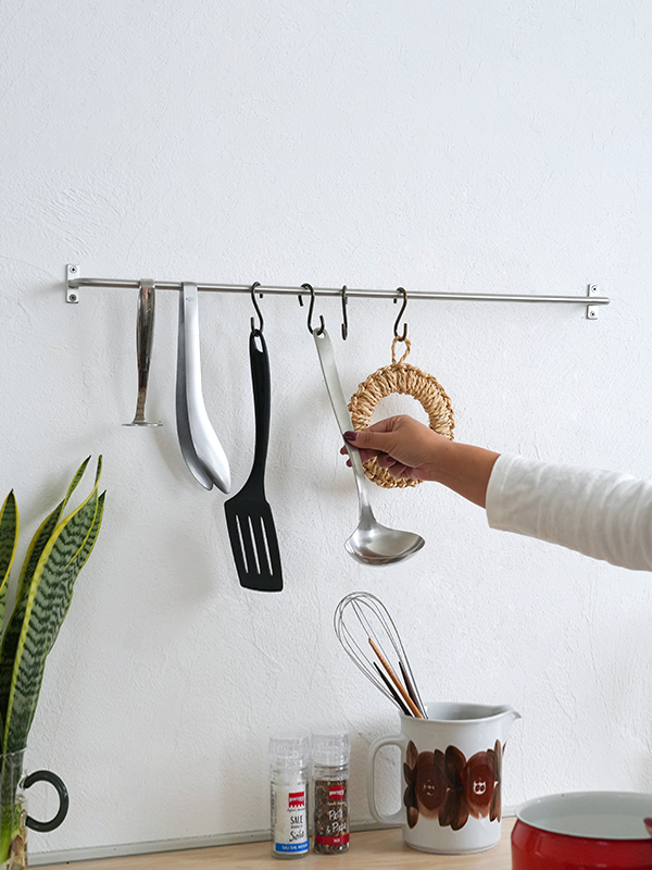 S字フックを引っ掛けたり、調理用具を掛けたり、クロスを掛けたりと様々に使用できます。
