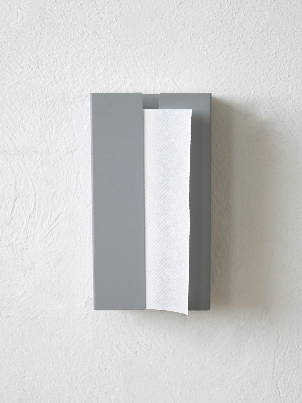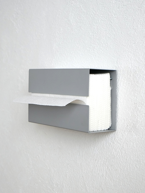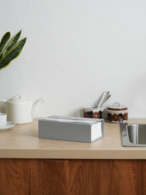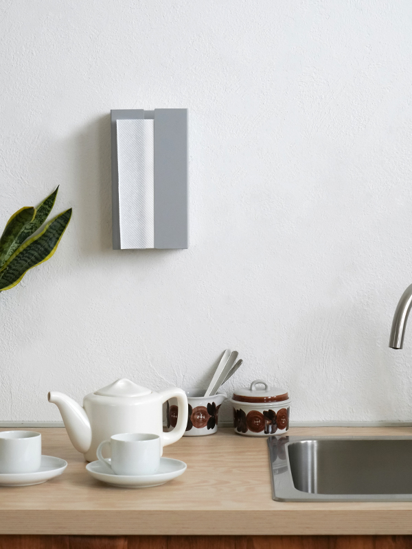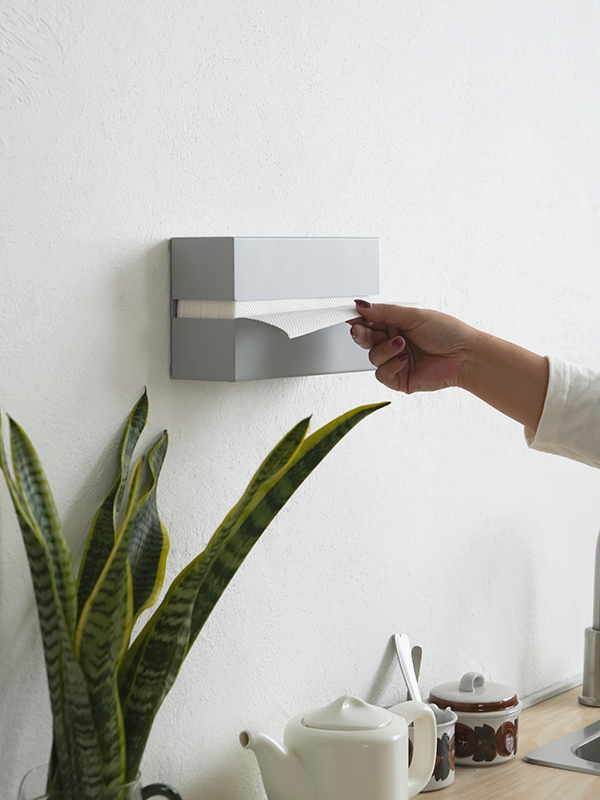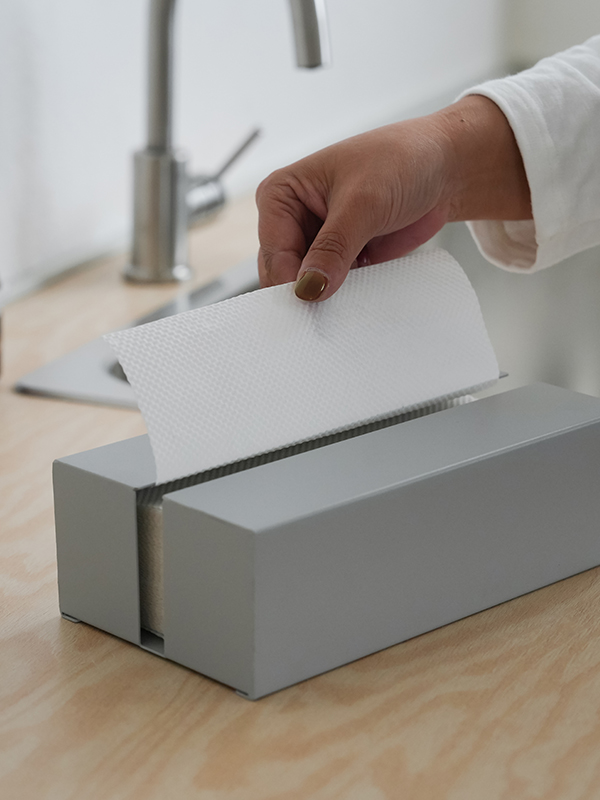 「ペーパータオルホルダー グレー」はざらりとした質感がシンプルかつニュートラルな雰囲気。