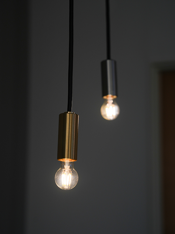 シェードは使わずに電球を直接取り付けて使うので、電球のデザインが際立ちます。