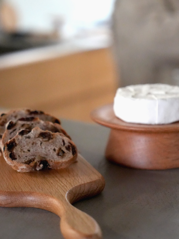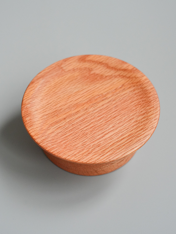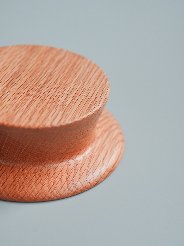 天然のレッドオーク材(やや赤みのあるオーク材)を使用し、食品に使用できるクリア塗装を施しました。